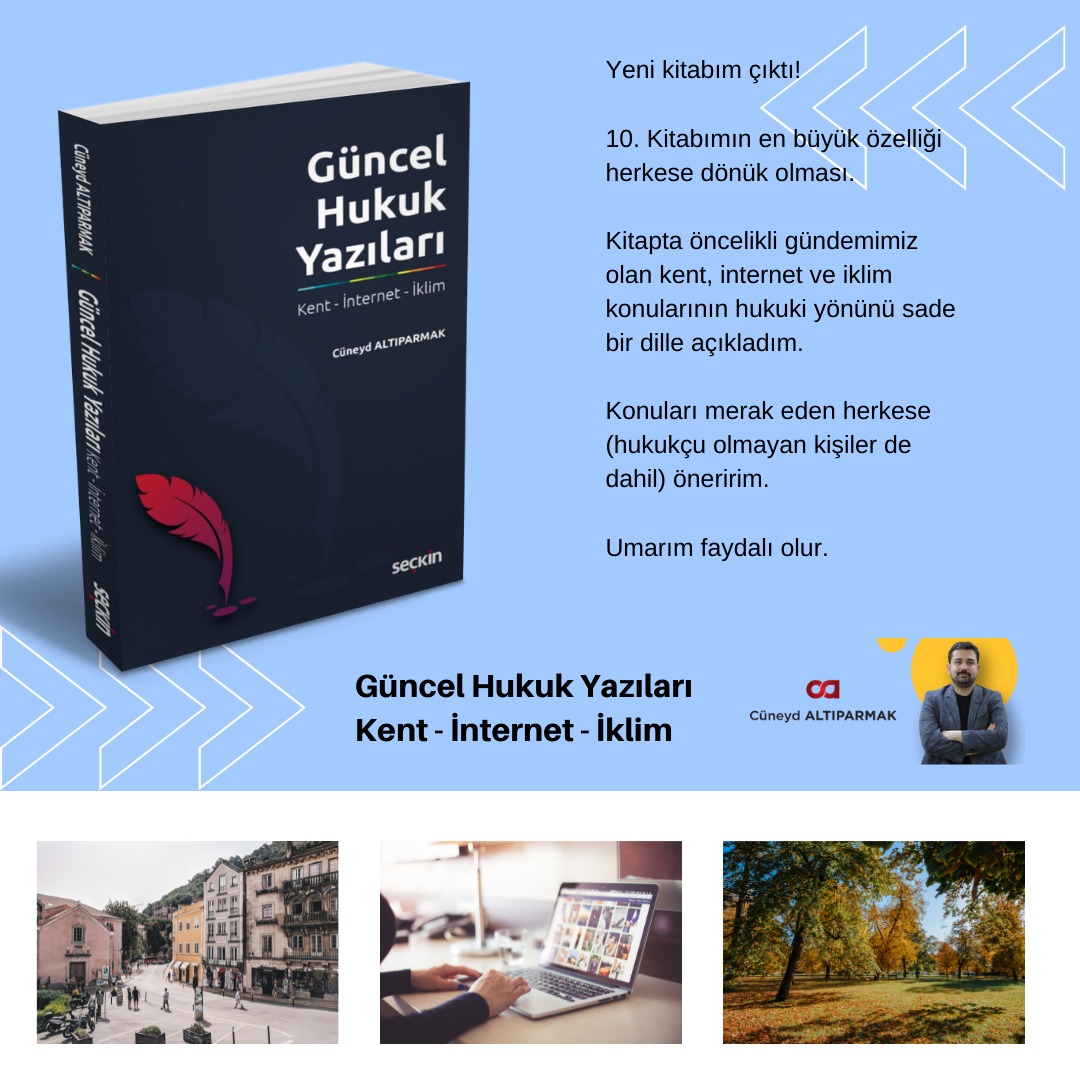 10. kitabını okuyucuların istifadesine sunduğunu belirten Türkiye Yazarlar Birliği üyesi, Hukukçu, Dijital Mağduriyet Mücadele Merkezi Başkanı Av. Cüneyt Altıparmak, “10. Kitabımın en büyük özelliği herkese dönük olması. Kitapta öncelikli gündemimiz olan kent, internet ve iklim konularının hukuki yönünü sade bir dille açıkladım. Konuları merak eden herkese, hukukçu olmayan kişiler de dahil, öneririm. Umarım faydalı olur” dedi.