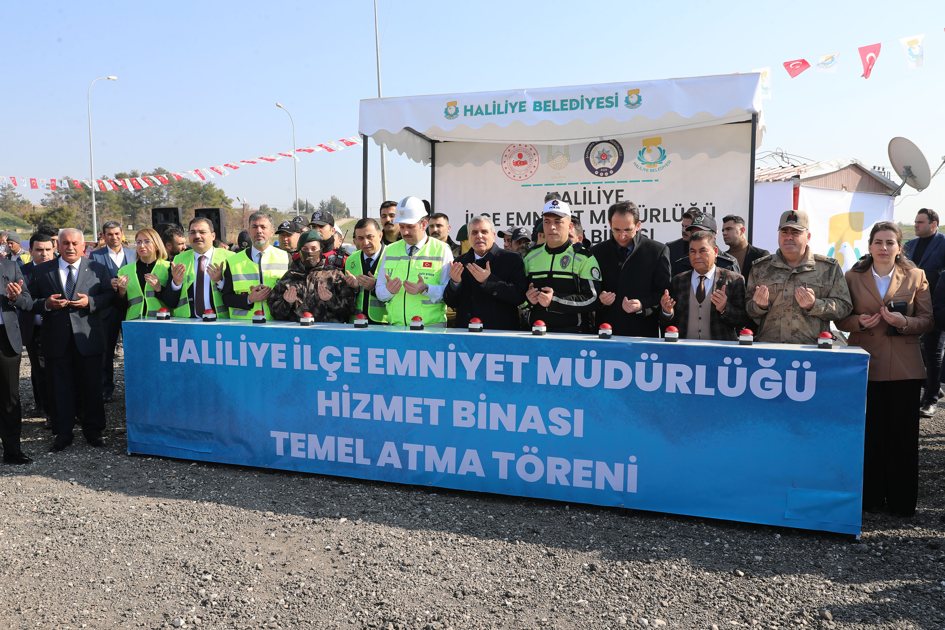 Haliliye İlçe Emniyet Müdürlüğü Hizmet Binasının temel atma törenine; Şanlıurfa Valisi Salih Ayhan, Şanlıurfa Büyükşehir Belediye Başkanı Zeynel Abidin Beyazgül, Şanlıurfa Cumhuriyet Başsavcısı Cuma Çoban, Haliliye Kaymakamı Serap Özmen Çetin, AK Parti İl Başkanı Abdurrahman Kırıkçı, İl Jandarma Komutanı Tuğgeneral Mücahit Avkıran, İl Emniyet Müdürü Mehmet Murat Ulucan, teşkilat üyeleri, meclis üyeleri, başkan yardımcıları, mahalle muhtarları ve mahalle sakinleri katıldı.