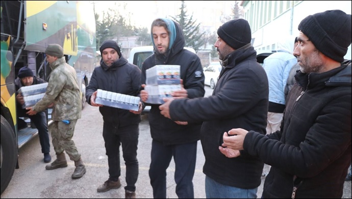Hayalet şehre dönüşen ve arama kurtarma çalışmalarının sürdüğü Besni'ye ulaşan Şanlıurfaspor, Mehmetçiğin koordinesindeki Besni Şehit Eren Kupal Mesleki ve Teknik Anadolu Lisesi'ne geçerek yardımları ulaştırdı.