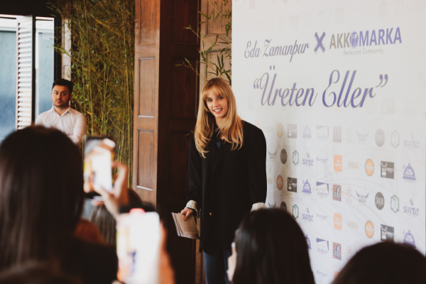 Kadınların ?alışma hayatındaki yerine ?nem veren iki ismin imzasıyla oluşturulan proje kapsamında, Akkomarka’nın restoranlarında kullandığı ve deprem b?lgesindeki kadın ?reticilerden ve kooperatiflerden tedarik ettiği ?r?n seti, ressam Eda Zamanpur’un “?reten Eller” temalı tasarımıyla giydirildi.?