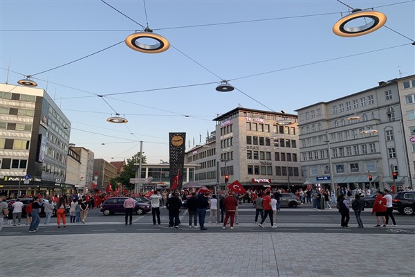2023 yılı 13. Cumhurbaşkanlığı 2. tur se?im sonu?larının ilan edilmesiyle birlikte; yaşadıkları şehirlerin merkezlerine akın eden Almanya'daki yurt dışı se?menler; Cumhurbaşkanı Erdoğan’ın zaferini konvoylar eşliğinde kutladı.?
