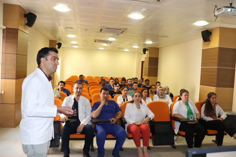 Şanlıurfa Harran Üniversitesi Hastanesi’nde görev yapan personele Enfeksiyon Hastalıkları ve Klinik Mikrobiyoloji Anabilim Dalı Dr. Öğr. Üyesi Mehmet Çelik tarafından Kırım Kongo Kanamalı Ateşi hastalığı ile ilgili eğitim verildi
