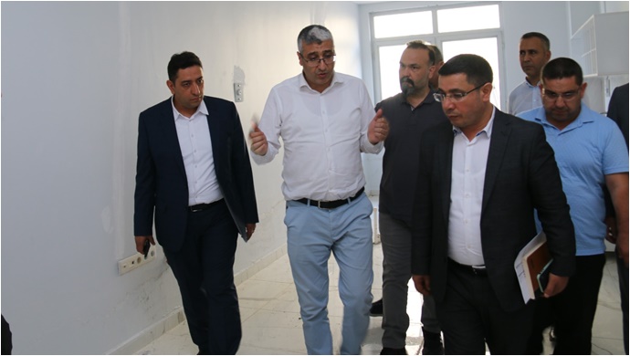 Şanlıurfa İl Sağlık Müdürü Dr.Ögr.Üyesi Abdullah Solmaz hizmet başkanları ile birlikte tefrişat işleri yapılan Haliliye Ağız ve Diş Sağlığı Hastanesinde incelemelerde bulundu.