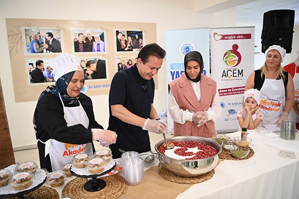 Başkan Yazıcı,” Dünya acısıyla tatlısıyla bu aydadır. Çünkü dünya acısıyla tatlısıyla vardır. Muharrem ayı’nda da dünya acısıyla tatlısıyla var olmuştur. Acıyı da tatlıyı da hep birlikte paylaşacağız. Özellikle acıyı paylaşarak azaltacağız, tatlıyı da paylaşarak çoğaltacağız. Aşure insanlığın bu gayretinin yemeğidir aslında. Buğdaydan, nohuttan, fasulyeden, pirinçten, kuru üzümden, cevizden, tarçından, nardan, elmadan oluşur ama aslında yaşadığımız yere göre envaı çeşit yeryüzü mahsullerinden bu aşı yapıyoruz. Aslında farklı ürünlerin bir senfonisi yaşanıyor. Buradan bir tat oluyorlar, bir ikram oluyorlar, yad oluyorlar ve bize ders oluyorlar. Aşure aslında karman çorman olmak değil, aşure farklılıklarla birlikte harman olmaktır. Hep birlikte bir olmak, hep birlikte insan olmaktır. Tuzlamızdaki bütün kardeşlerimize, bütün insanlığa can katan bu insanlık aşını sunmayı ve özellikle de insana rehber olan bir formülü hep birlikte paylaşmayı düşünüyoruz ve paylaşıyoruz” dedi.