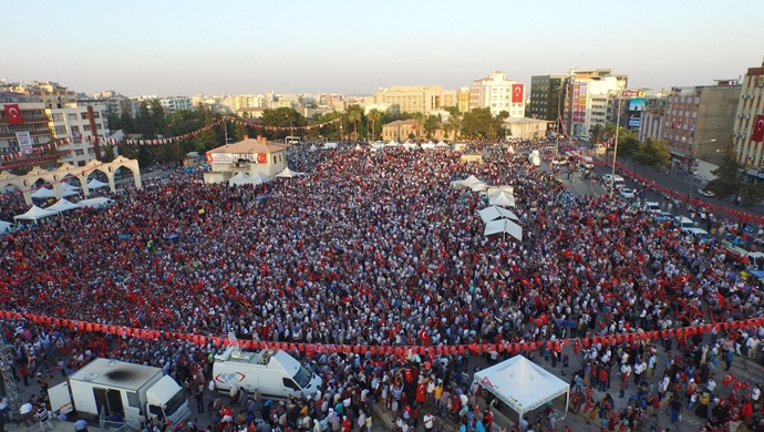 Cumhurbaşkanlığı himayesinde İstanbul Yenikapı'da düzenlenen Demokrasi Ve Şehitler Mitingi, eş zamanlı olarak Şanlıurfa'da Büyükşehir Belediyesi'nin organizasyonunda Rabia Meydanı'nda 50 bini aşkın vatandaşı tek çatı altında topladı.