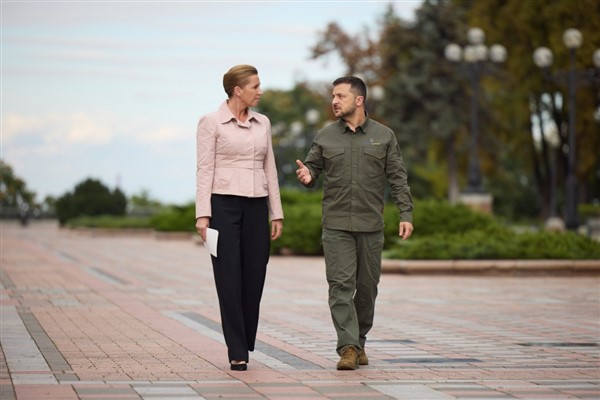 "Kiev'e hoş geldiniz sevgili Mette Frederiksen. Başta F-16'lar olmak üzere Danimarka'nın askeri yardımlarına minnettarım. Onları Ukrayna semalarında görmeye yaklaşıyoruz. Danimarka'nın mayın temizleme yardımına minnettarım ve Ukrayna'da Danimarka ekipmanı üretmeyi sabırsızlıkla bekliyorum. Savunma Sanayii Forumumuza Danimarka ve Danimarka firmaları davetlidir. Mykolayiv bölgesi de dahil olmak üzere, Danimarka'nın iyileşme çalışmalarına katılımından dolayı özellikle minnettarım. Ukrayna ve Danimarka'nın birlikte attığı her adım, uluslarımızı ve tüm özgür dünyayı güçlendiriyor."