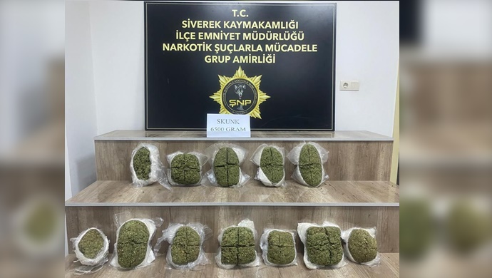 Siverek İlçe Emniyet Müdürlüğüne Narkotik suçlarla mücadele grup amirliği ekiplerince, Siverek- Diyarbakır karayolu kırsal Selimpınar mevkiinde yapılan yol kontrollerinde, bir otobüste bulunan çantada 6 kilo 500 gram Skunk uyuşturucu ele geçirildi.