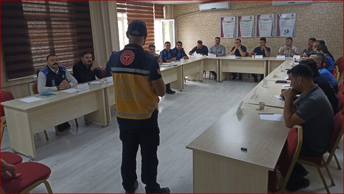 Şanlıurfa İl Sağlık Müdürlüğü tarafından Haliliye Belediyesi Zabıta müdürlüğü personellerine "Temel İlk Yardım" eğitimi verildi.
