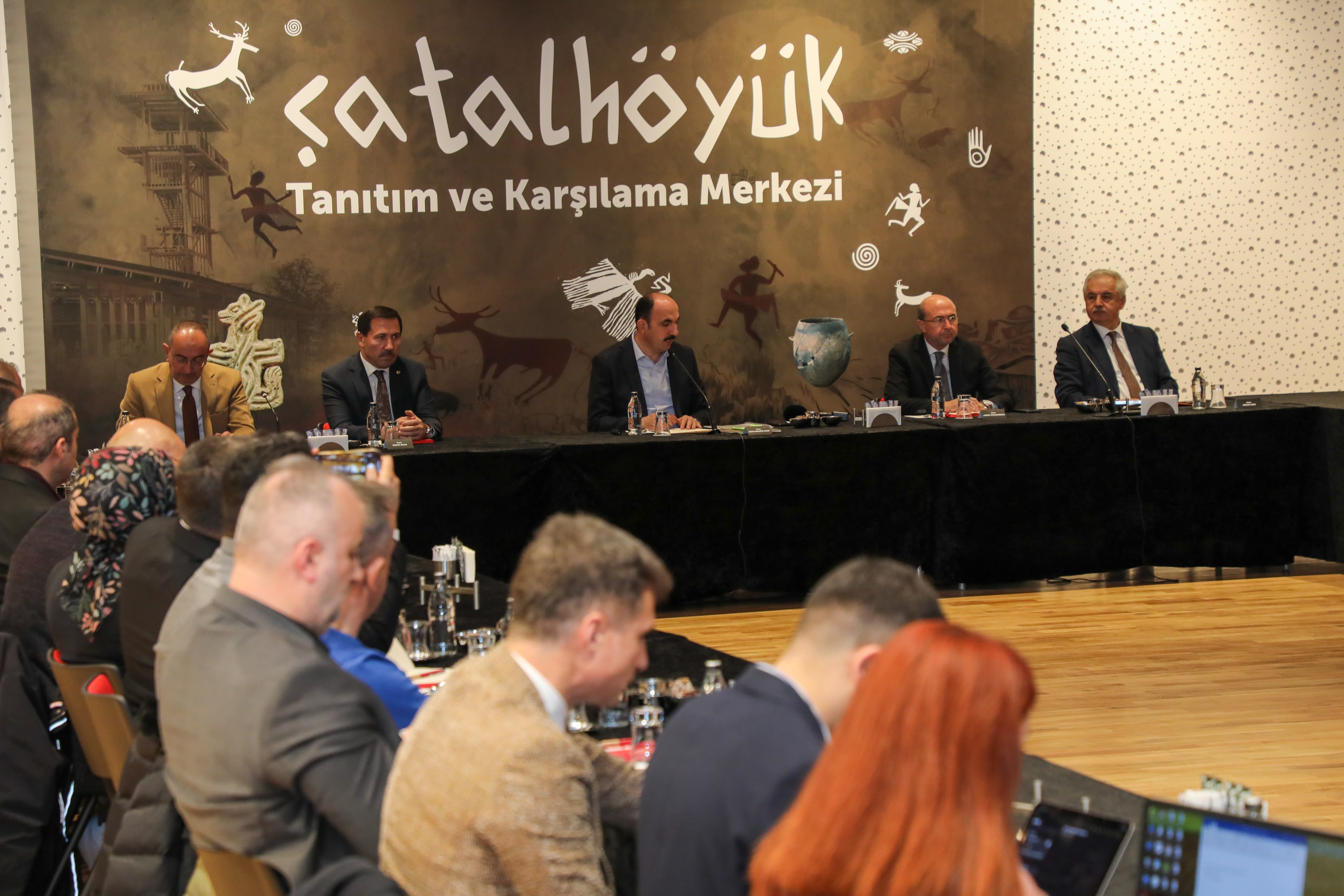 Konya Büyükşehir Belediyesi Çatalhöyük Tanıtım ve Karşılama Merkezi’nde düzenlenen toplantıya Başkan Altay ile birlikte; Karatay Belediye Başkanı Hasan Kılca, Meram Belediye Başkanı Mustafa Kavuş, Selçuklu Belediye Başkanı Ahmet Pekyatırmacı ile Konya’da turizm alanında faaliyet gösteren kurum ve kuruluşların temsilcileri katıldı.