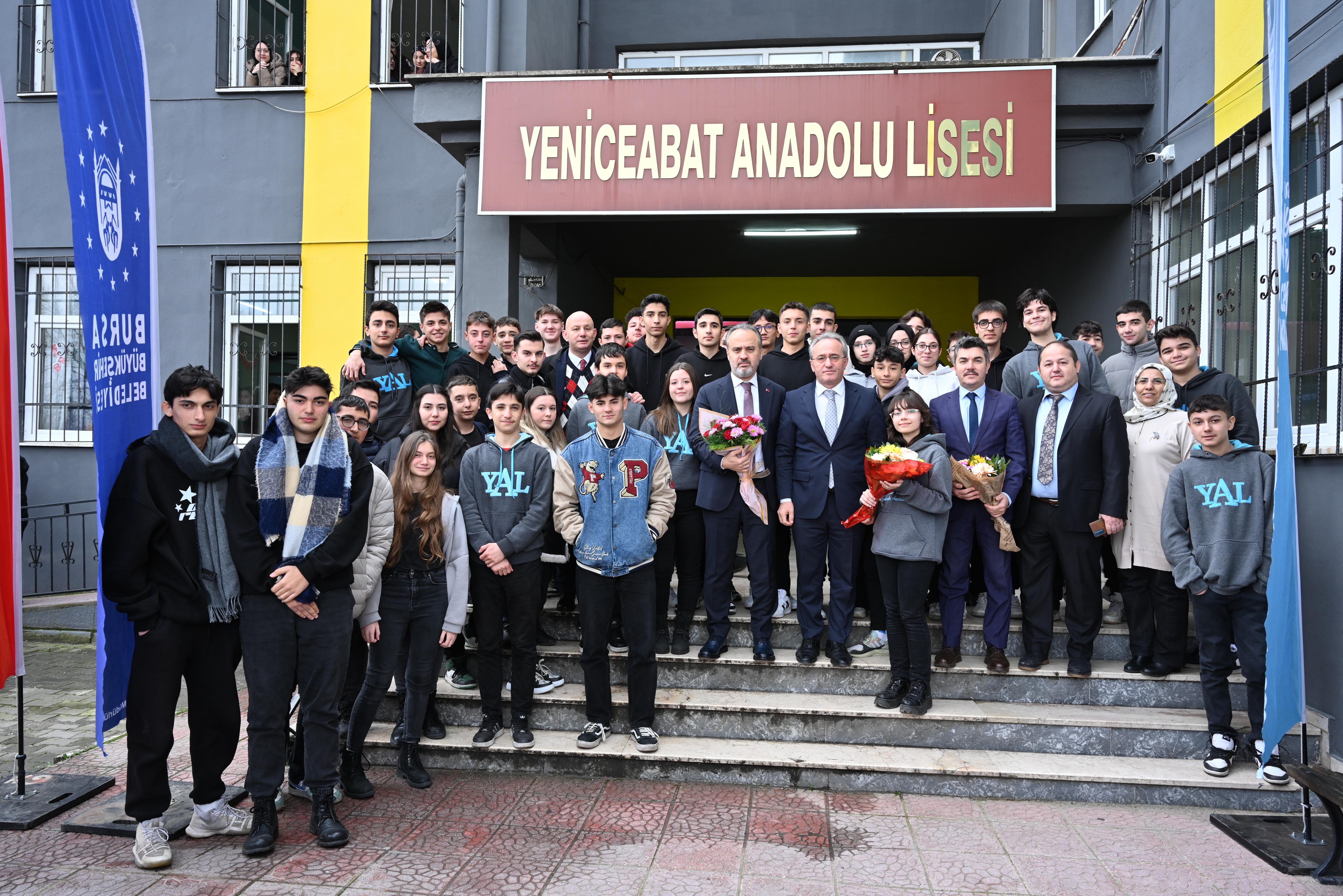 Bursa Büyükşehir Belediye Başkanı Alinur Aktaş’ın yeni durağı, Yeniceabat Anadolu Lisesi oldu.
