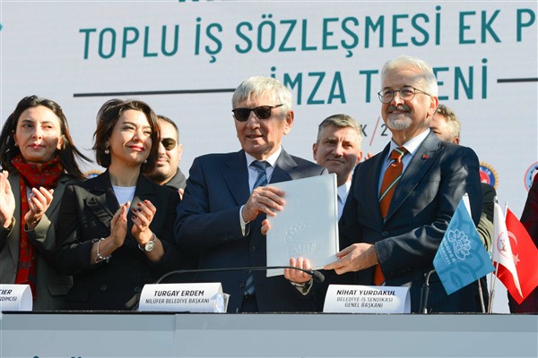 Nilüfer Belediye Başkanı Turgay Erdem, çalışanları yakından ilgilendiren bu müjdeyi, Toplu İş Sözleşmesi Ek Protokolü imza töreninde paylaştı. Nilüfer Cumhuriyet Meydanı’nda düzenlenen törene Nilüfer Belediyesi çalışanları katıldı.