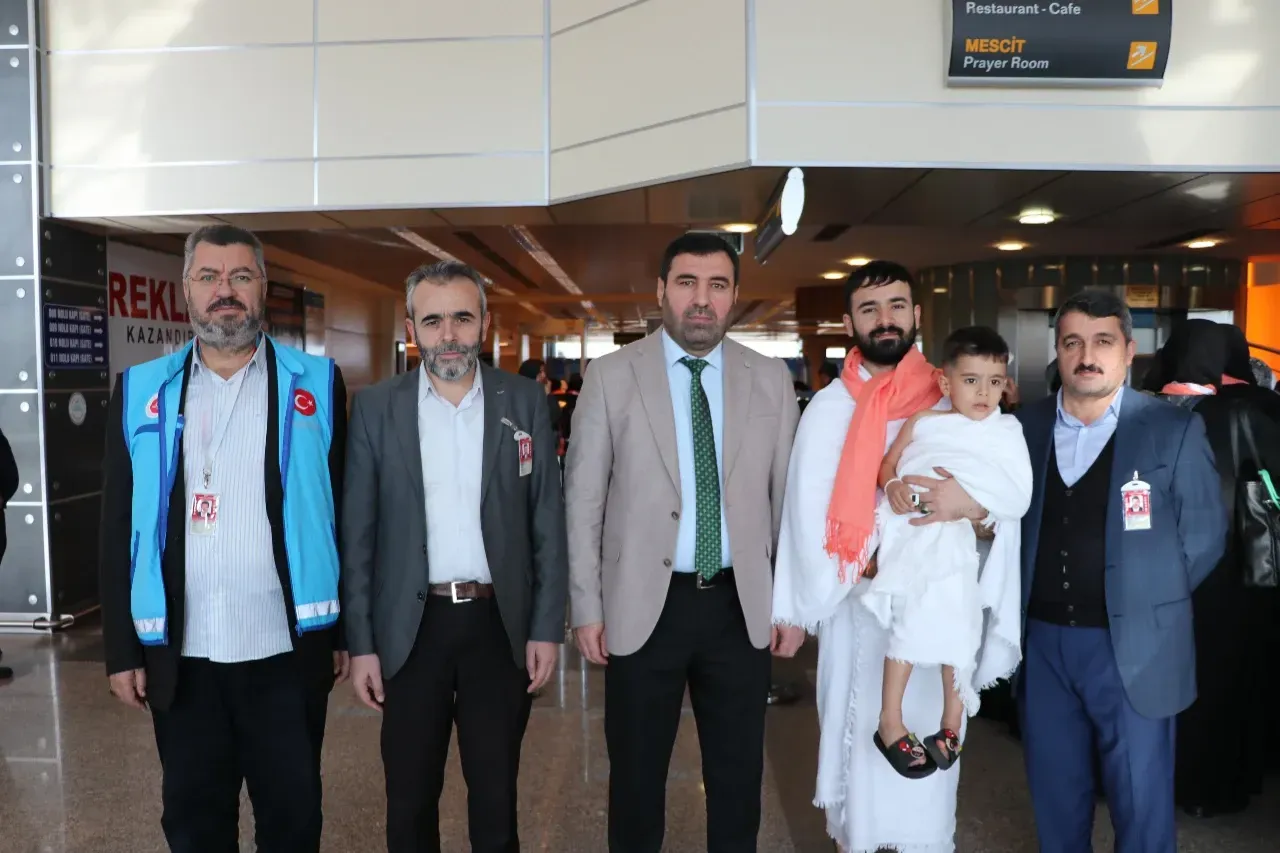 Umreciler arasında 4 yaşındaki Eymen Aras dikkat çekti. 4 yaşındaki Aras, en küçük umreci olarak ailesi ile birlikte kutsal topraklara uğurlandı.
