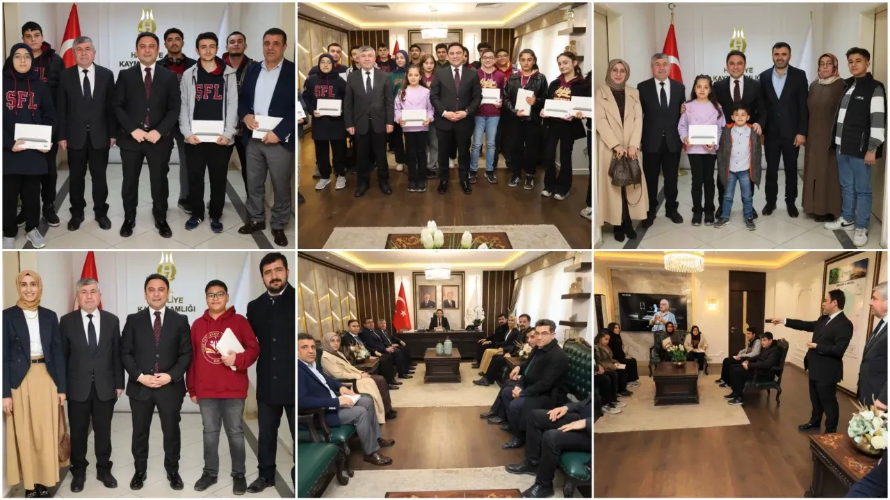 Kaymakamlık makamında gerçekleştirilen törende, farklı okullardan seçilen toplam 18 öğrenci başarılarından dolayı tebrik edildi. Kaymakam Dr. Şahin, öğrencilerin motivasyonunu artırmak ve başarılarını desteklemek amacıyla çeşitli teknolojik hediyeler takdim etti. Ödül alan öğrenciler şu okullardan geldi: