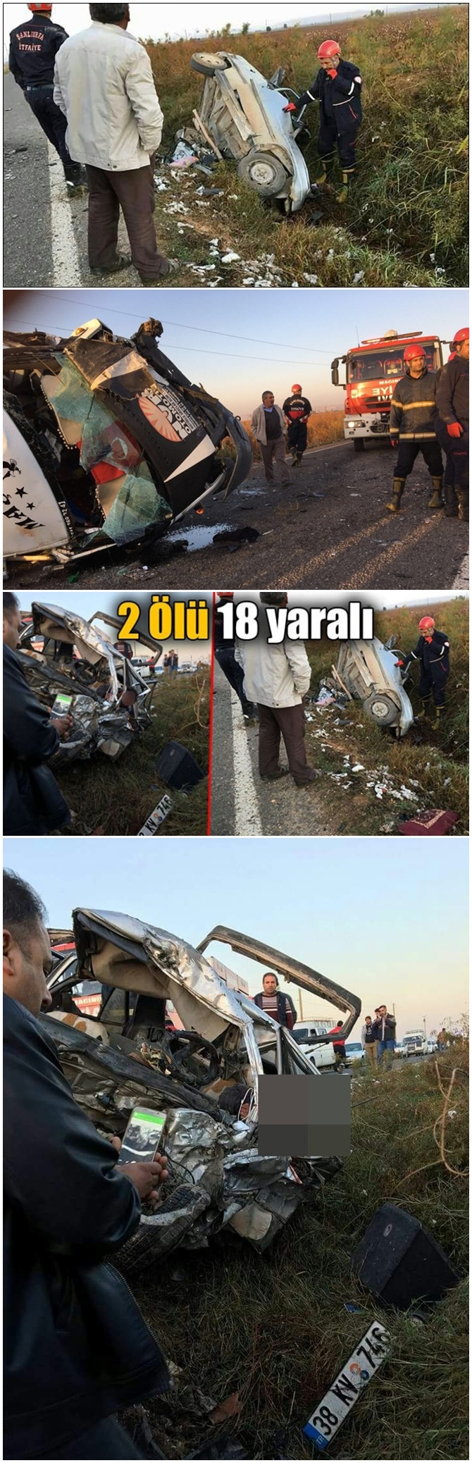 Şanlıurfa’nın merkez Eyyubiye ilçesine bağlı Kısas Mahallesi yakınlarında çoğu kadın olan tarım işçilerini taşıyan minibüs ile 38 KV 746 plakalı otomobil çarpıştı.