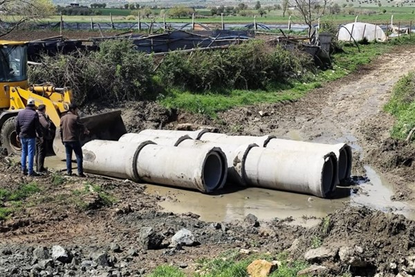 Ayrıca, yağmur suyu hattı ve imalatı kapsamında mezrada yağmur suyunun sağlıklı şekilde akışını sağlamak ve vatandaşların araçlarıyla ulaşımını kolaylaştırmak amacıyla büz boru döşemesi ile birlikte yol onarım çalışması yapıldı.