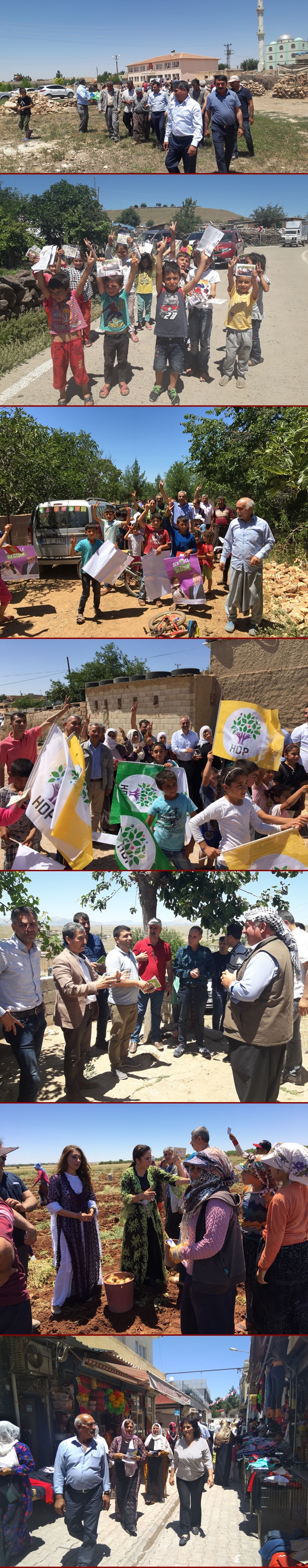 HDP Şanlıurfa Milletvekili adayları 24 Haziran erken seçim hazırlıklarına devam ediyor. Adaylardan Ömer Öcalan - İsmail Kaplan Birecik, Aliye Kızıldamar Suruç, Ayşe Sürücü – Meral Balter Hilvan, Nusrettin Maçin – Bişar Tüysüz Siverek, Yusuf Yetim Bozova, Orhan Özkan Ceylanpınar, Roza Yazmacı Viranşehir ilçelerinde Songül Arpa, Nimetullah Erdoğmuş, İsmail Telli ve Şerif Bendaş Urfa ve merkeze bağlı ilçelerde çalışmalarını sürdürerek seçmenlerle bir araya geldi.