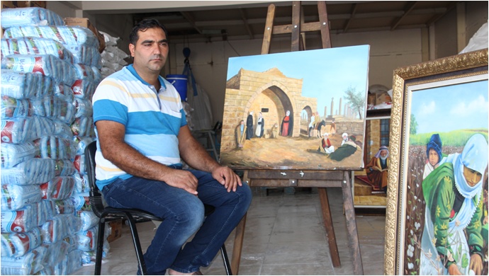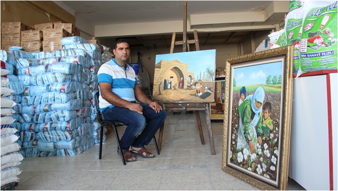 Şanlıurfa’da Gıda ve Toptancılar Sitesi’nde tuz satan Mustafa Çavcı, çocukluğundan beri resim çiziyor.