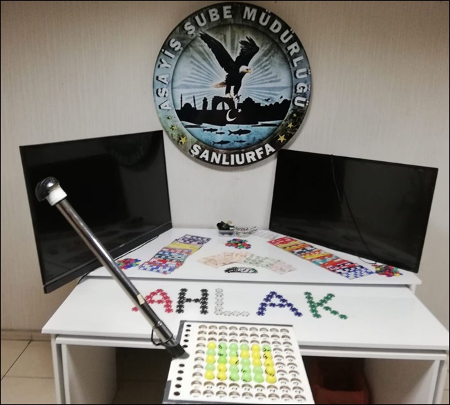 Edinilen bilgiye göre, Şanlıurfa İl Emniyet Müdürlüğü Asayiş Şube Müdürlüğü ekipleri tarafından kent merkezinde bazı kişilerin kumar oynatmak ve oynanması için yer temin etme girişiminde bulunduğu tespit edildi.yapılan operasyonlarda 5 şüpheli hakkında kabahatler kanunu kapsamında idari para cezası kesildi.Emniyetten yapılan açıklamada:"AsayişŞube Müdürlüğü* olarak ilimiz genelinde kumar oynamak için yer ve imkan sağlayarak vatandaşlarımızı mağdur edip kazanç saglayan şahıslara yönelik yapılan çalışmalarda; son bir ay içerisinde *5 ayrı işyerinde* yapılan kontrollerde *tombala* oynattığı tespit edilen *5 şüpheli şahsa "Kumar oynamak için yer ve imkan sağlama"* suçundan adli işlem yapılmıştır. İşyerlerinde yapılan kontrollerde *5 adet kamera cihazı, 8 adet tv, 5 adet tombala makinası, 1150 adet pul, 190 adet tombala kartı ve 1220 tl para* elde edilmiştir. Tombala oynadığı tespil edilen *104 şahsa* toplamda *33280 tl* Kabahatler Kanunu kapsamında idari para cezası kesilmiştir."Denildi.