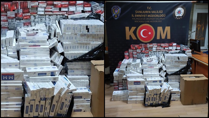 Şanlıurfa Emniyet Müdürlüğü Asayiş şube müdürlüğü ekipleri Şanlıurfa- Mardin yolunda durdurduğu bir yaptığı aramada 10 bin 200 paket gümrük kaçağı sigara ele geçirdi.1 kişi gözaltına alındı.