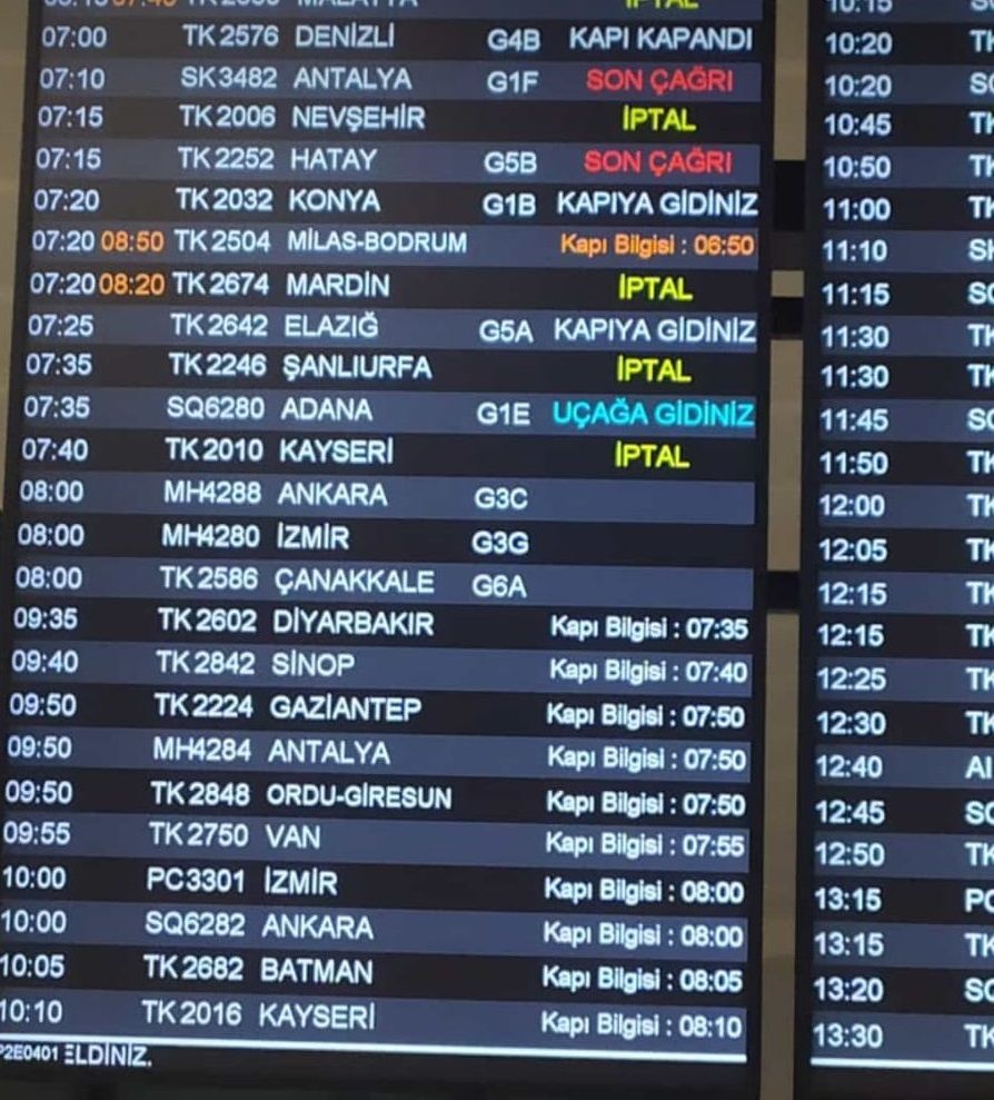 GAP Havalimanı’nda kar temizliğinin yapıldığı ve uçuşlarda herhangi bir aksaklığın olmadığı bildirilse de İstanbul’dan Şanlıurfa’ya gelen TK2246 numaralı uçuşun iptal edildiği öğrenildi.