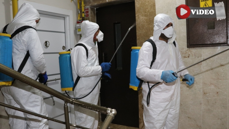 Apartman sakinlerini de virüsten korumak için binalarda da dezenfekte çalışması yaptıklarının altını çizen Başkan Metin Baydilli, “Karaköprü Belediyesi olarak tüm kamu kurumları, camiler, otobüs durakları, parklar, yollar, kaldırımlar da ve iş yerlerinde dezenfekte çalışması yaptık. Vatandaşlarımızın talepleri doğrultusunda binalarda da dezenfekte çalışması başlattık. Binalarda ortak kullanım alanı olan merdivenler, asansör ve merdiven korkuluklarında dezenfekte çalışması yapıldı” diye konuştu.