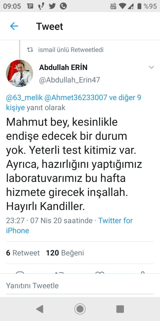 "Kesinlikle endişe edecek bir durum yok. Yeterli test kitimiz var. Ayrıca, hazırlığını yaptığımız laboratuvarımız bu hafta hizmete girecek inşallah."