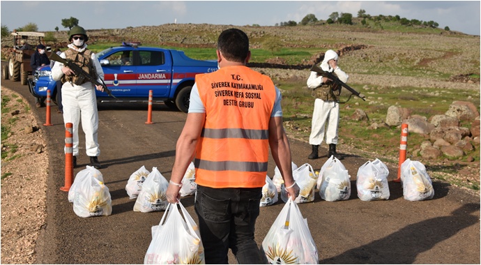 Korona virüs önlemleri kapsamında karantina altına alınan mahalle ve binalardaki vatandaşların gıda ve dezenfektan ihtiyaçları Siverek Belediyesi ekiplerince karşılanıyor.