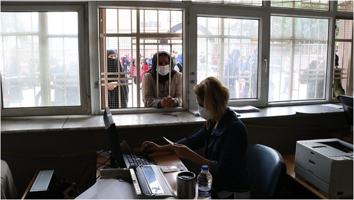 Çok sayıda veznedarın görevlendirildiği okullardaki PTT şubelerine maske takarak gelen vatandaşlar, okul avlusunda bariyerler ve mesafe kontrolünü sağlamaya yarayan sarı çizgileri dikkate alarak sıraya giriyor. İşlemlerini kısa sürede yapan vatandaşlar, düzenlemeden dolayı Vali Abdullah Erin’e ve emeği geçenlere teşekkür etti.