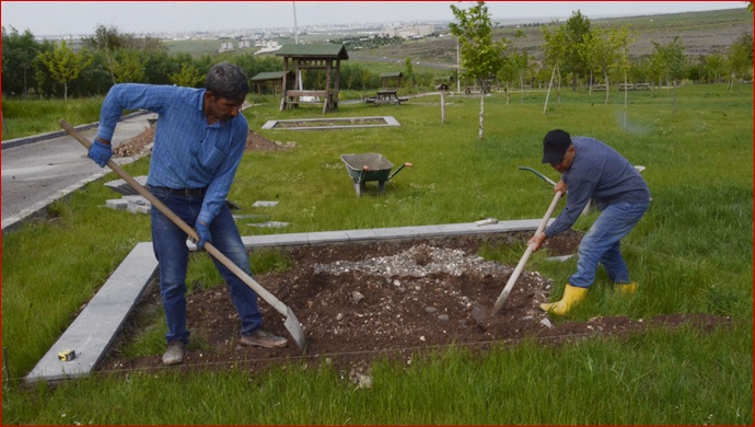 Park ve Bahçeler Müdürlüğü ekipleri ilçe genelinde bulunan park ve yeşil alan ve mesire alanlarında çim biçme ve genel temizliğin yanı sıra çevre düzenleme onarım çalışmalarını hummalı bir şekilde sürdürüyor.