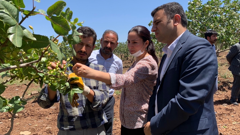 HDP'li Öcalan, ziyaret sırasında kendi ailesinin de fıstık yetiştiricisi olduğunu, bir ağacın 20 yılda yetiştiğini ve çiftçinin ilk mahsulü alabilmesi için 20 yıl beklemek zorunda kaldığını belirtti. Öcalan, "Fıstık bu bölgede bir yıl tutar bir yıl da tutmaz. Bu yıl iyi olsa da bu kez dolu vurdu. Çiftçinin büyük bir zararı oluştu. Geride ağaçta kalan fıstıklar ise, yaralandı ve önümüzdeki günlerde onlarda ağaçtan düşecekler. Bu çiftçilerimize sahip çıkmalıyız. Durumları iyi değil ve zararları büyük. Bakın Urfa bölgenin en büyük tarım arazisine sahip olmasına rağmen buradaki çiftçiler devlet tarafından sahipsiz bırakılarak, destekten yoksun bırakılmışlar. Bu çiftçilerimizin zararının karşılanması gerekiyor" çağrısı yaptı.