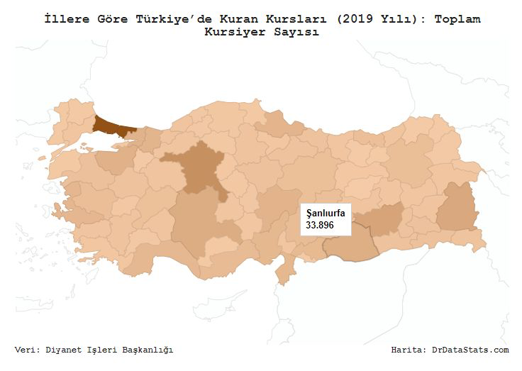 Drdatastats isimli sitenin Diyanet İşleri Başkanlığı’ndan derlediği verilere göre 2019 yılında Türkiye’de illere göre Kuran kurslarındaki kursiyer sayısını açıklandı.