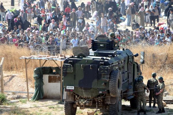 Dün sınırda bekleyen ve sayıları 10 bini bulan Suriyeliler, bu sabah sayıları 3 bin civarına düşmesine rağmen sınır hattında bekleyişini sürdürüyor. Sınırda bekleyen binlerce Suriyelinin ise geçişlere izin verilmeyince yeniden Telabyad'a dönerek geceyi burada geçirdiği ve sınırın açılması durumunda yeniden Türkiye'ye gelecekleri bildirildi. Bu arada bölgede bekleyen binlerce Suriyeli, sabah saatlerinde sınır tellerinin bulunduğu bölgede geçiş taleplerini dile getirdi. Bu sırada bazı Suriyeliler ellerindeki pet şişeleri birbirine vurarak ve havaya kaldırarak su istedi. Su talepleri dile getirilen ve sıcaktan bunalan Suriyelilere zaman zaman TOMA'lardan sıkılan su ile serinletildi. Sınırda sık sık 'Türkiye' diyerek slogan atan Suriyeliler, geçişlerine izin verilmesini beklemeye devam ediyor.Kaynak:DAHA