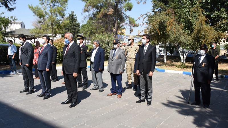 Hükümet Konağı bahçesinde düzenlenen tören, saygı dürüşü ve okunan istiklal marşının ardından Atatürk Anıtına çelenk sunumuyla devam etti. Saygı duruşu ve İstiklal Marşının okunmasının ardından günün anlam ve önemini belirten açıklamayı Jandarma Astsubay Kıdemli Çavuş Hacı Demir yaptı.