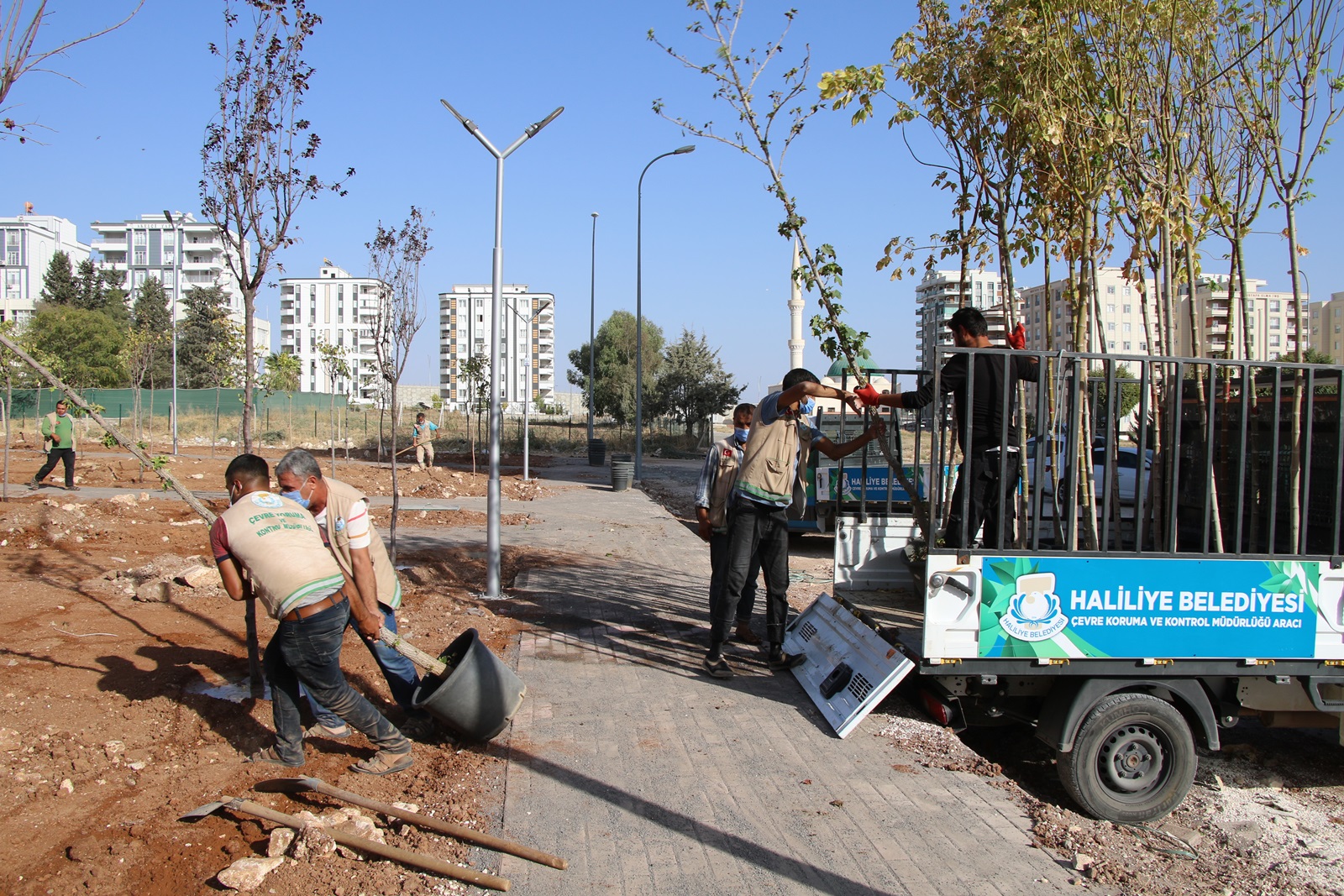 Haliliye Belediyesi, ilçede yeşilin daha da görünür bir hale gelmesi için çalışmalarını aralıksız bir şekilde sürdürüyor. Bu kapsamda Belediye Başkanı Mehmet Canpolat’ın talimatları doğrultusunda Çevre Koruma ve Kontrol Müdürlüğü Karşıyaka, Ahmet Yesevi, Süleymaniye ve Devteşti mahallelerinde yapımları tamamlanan yeni parklarda ağaçlandırma çalışmaları devam ediyor. Ekipler ağaçlandırma çalışmalarının ardından çim ekme çalışmalarına başlayacak.