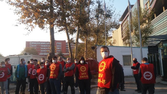 DİSK’e bağlı Devrimci Yapı, Yol ve İnşaat İşçileri Sendikası (Dev Yapı-İş) üyesi olan işçiler, maaşlarının ödenmemesi üzerine bu sabah iş bırakıp, şantiye önünde oturma eylemine başladı.