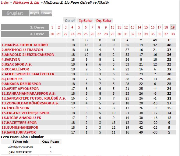 Misli.com 2. Lig Beyaz grupta 15.Haftanın erteleme maçında