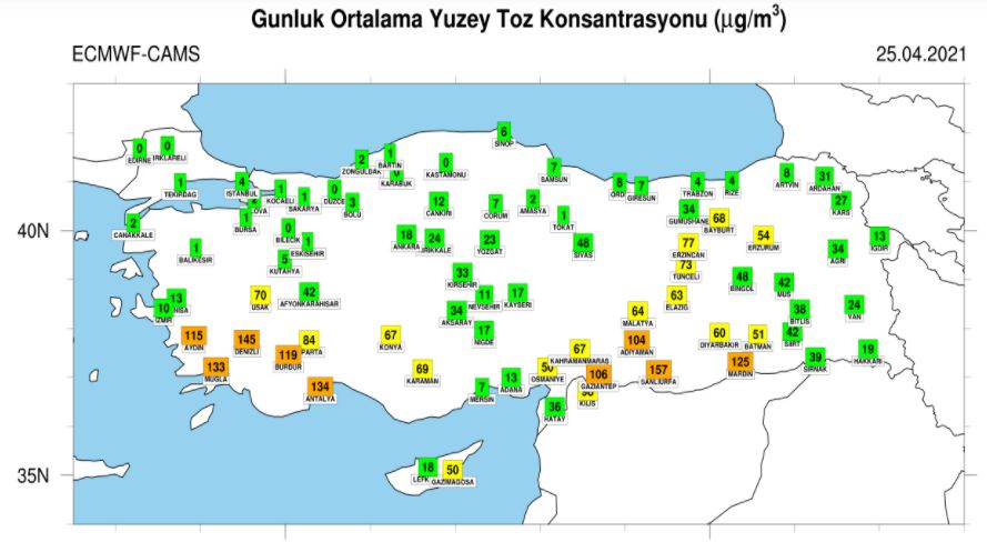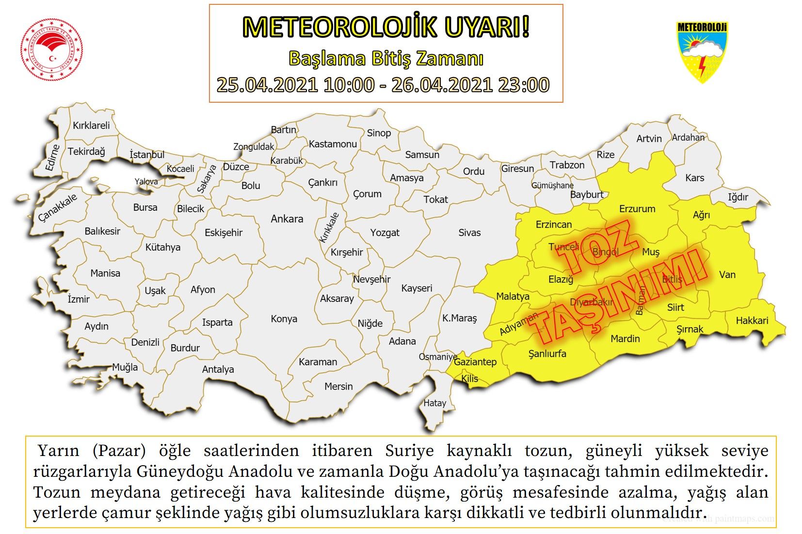 Açıklamaya göre, toz taşımının 10.00 civarlarında etkili olması bekleniyor.