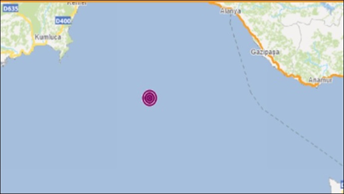 Akdeniz'de 4.5 büyüklüğünde deprem oldu