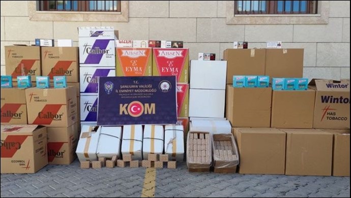 Emniyetten yapılan açıklamada,''Şanlıurfa Cumhuriyet Başsavcılığı koordinesinde KOM Şube Müdürlüğümüzce Sigara Kaçakçılığı suçunun önlenmesine yönelik yürütülmekte olan çalışmalarda; ilimiz merkezi ve Adana ilinde bulunan 9 adreste arama faaliyeti gerçekleştirilmiş, yapılan aramalarda toplamda;