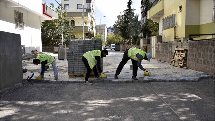 Fen İşlerine bağlı ekipler ilçenin Ofis mahallesinde alt yapısı tamamlanan sokaklarda kilitli parke taşı çalışmalarını sürdürürken aynı zamanda bazı mahallelerde ise onarım çalışmalarına devam ediyor.
