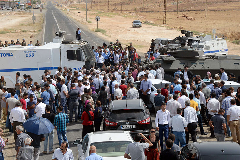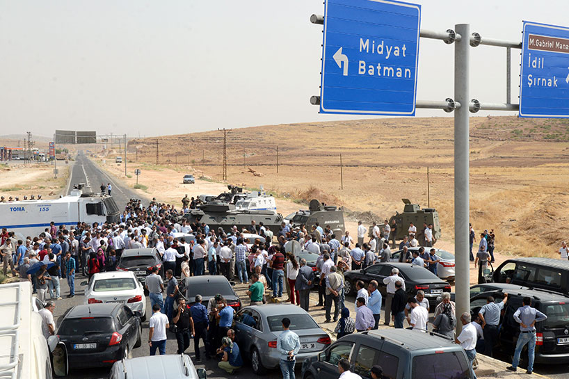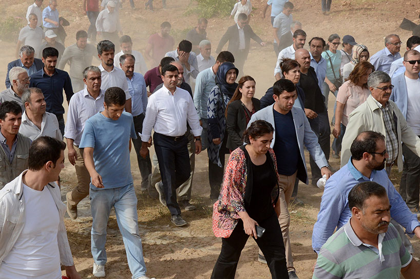 HDP'nin grup toplantısını yapmak için Diyarbakır'dan yola çıkan ve Midyat çıkışında polis ile askerler tarafından engellenen HDP Eş Genel Başkanı Demirtaş ve beraberindekiler, araziye vurarak Cizre'ye doğru yürüyüşe geçti.