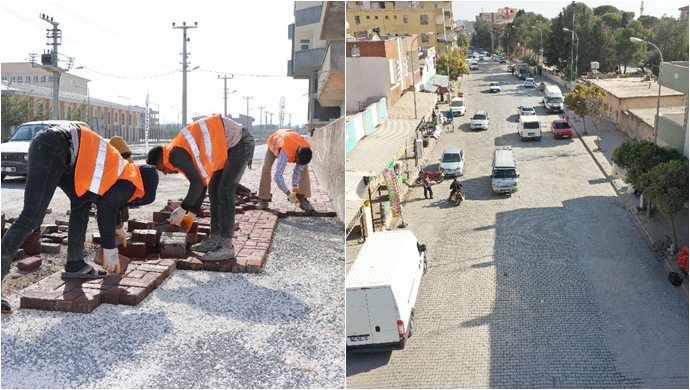 Büyükşehir Belediyesine bağlı Fen İşleri Daire Başkanlığı ekipleri Akçakale ilçesi Sanayi Caddesinde deforme olan kaldırım taşları yenilenirken refüj çalışması da yapıldı.