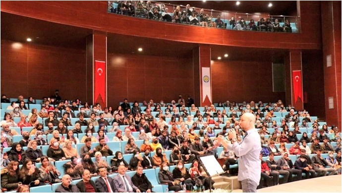 Gönüllülük haftası dolayısıyla İktisadi ve İdari Bilimler Fakültesi konferans salonunda gerçekleşen Kahraman Tazeoğlu’nun konuk olduğu söyleşiye, Şanlıurfa Gençlik ve Spor İl Müdür Vekili Emrah Yaşar, Harran Üniversitesi Rektör Yardımcısı Prof. Dr. Mehmet Tahir Güllüoğlu, akademik ile idari personeller ve çok sayıda öğrenci katıldı.