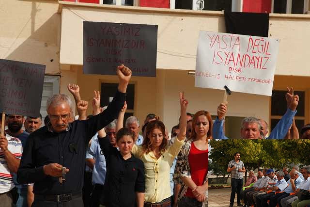 Ankara’da yapılan bombalı saldırı sonucu kana bulanan Barış Mitingi’nin çağrıcıları olan KESK ve DİSK’in aldığı 2 günlük grev kapsamında Genel İş Sendikası’na bağlı Halfeti Belediyesi personeli, iş bırakarak greve gitti. Siyah bezin asıldığı belediye hizmet binasının bahçesinde başlanılan grev kapsamında oluşturulan çıkarılan program forum şeklinde gerçekleşti. Ülkede son yüz yılda yaşanan baskı, şiddet ve katliamlar ve bu doğrultuda yürütülen politikalar ele alındı.