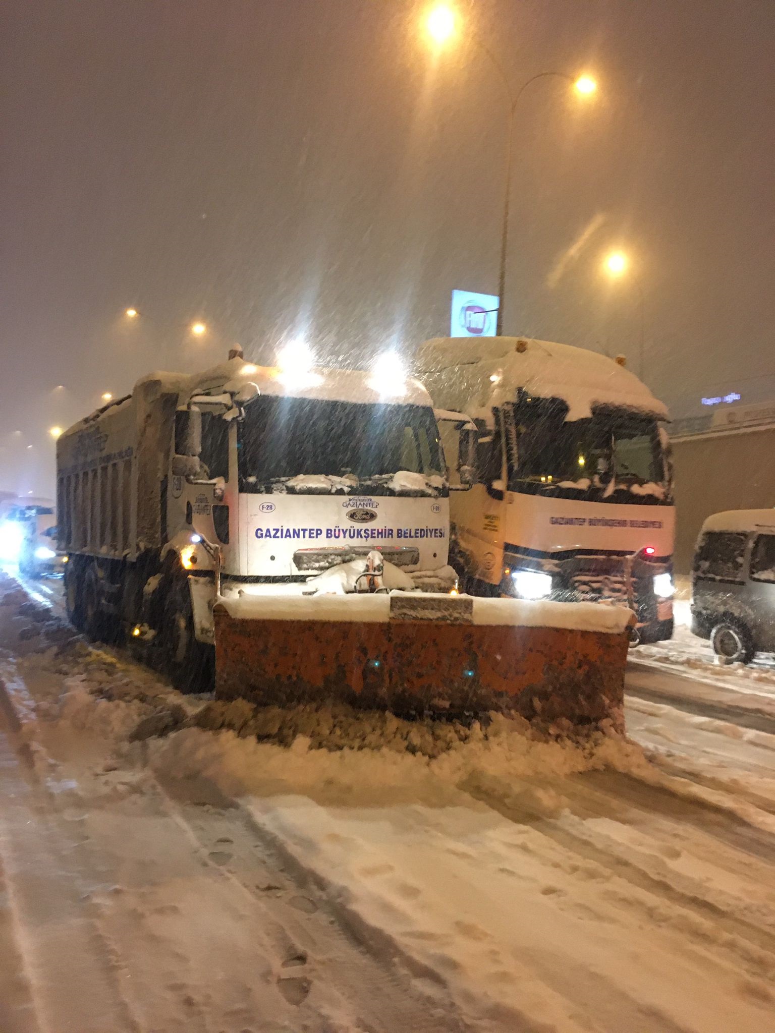 Soğuk havanın etkili olmasıyla kentte başlayan yoğun kar yağışına karşı yaşamın olumsuz etkilenmemesi için harekete geçen Büyükşehir Belediyesi, yağışın başladığı dün öğle saatlerinden itibaren oluşturduğu karla mücadele ekipleri ile tüm gece boyunca yol açma çalışmalarını aralıksız sürdürdü. Gaziantep Büyükşehir Belediye Başkanı Fatma Şahin de sabah saatlerine kadar ekiplerin çalışmalarını merkez ve sahada kontrol etti. Kar kalınlığının 50 santimetreye çıktığı ve tipiye dönüşen yağışta ekipler başta D-400 Karayolu olmak üzere şehrin ana arterlerini oluşturan cadde ve bulvarlarda kar küreme çalışması yürüterek yollardan karı temizledi, trafik akışına uygun hale getirdi, gece yarısından itibaren sıcaklığın sıfırın altına düşmesiyle oluşacak olası buzlanmaya karşı tuzlama çalışması yapıldı. Sabah saatlerine kadar yürütülen çalışmalar sonucunda Büyükşehir Belediyesi, trafik akışını sağladı. Büyükşehir Belediyesi görev alanında bulunan ve trafik akışının sağlandığı tüm ana arterlerde çalışmalar devam ederken, yollar akışa uygun halde kontrol altında tutuluyor.