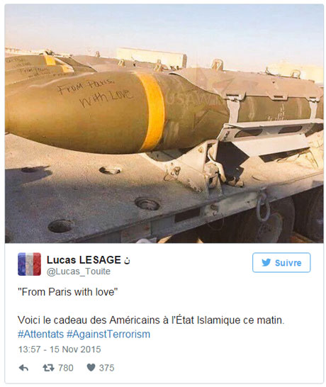IŞİD’e atılan bombaların üstüne “From Paris, with love” yani “Paris’ten sevgiyle” notları yazıldı.