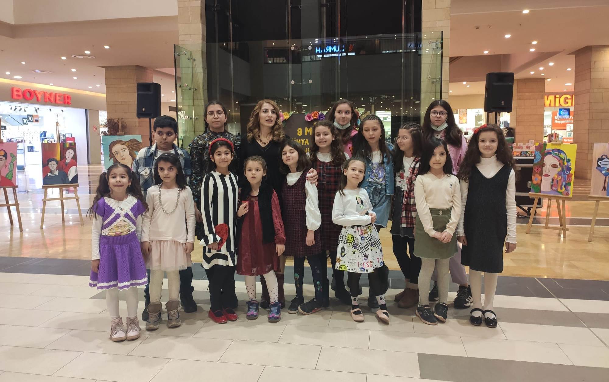 CANART Sanat Atölyesinin Sanat Eğitimcisi Burcu Can ve minik ressam öğrencilerinin “ 8 Mart Dünya Kadınlar Gününe özel “Sadece Kadın” konulu resim sergisi Şanlıurfa Piazza AVM eski Buz Pisti etkinlik alanında sanatseverlerin beğenisine sunuldu.