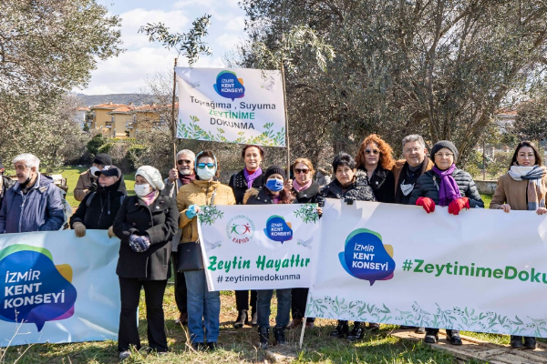 Zeytinlikleri maden faaliyetlerine açan yönetmeliğe karşı yüze yakın yakın yerel yönetim ve sivil toplum kuruluşu Güzelbahçe Yelki'de bir araya gelerek basın açıklaması yaptı. Ege Çevre ve Kültür Platformu’nun (EGEÇEP) çağrısıyla yapılan “Zeytinime Dokunma” toplantısına İzmir Büyükşehir Belediye Başkanı Tunç Soyer de katıldı.