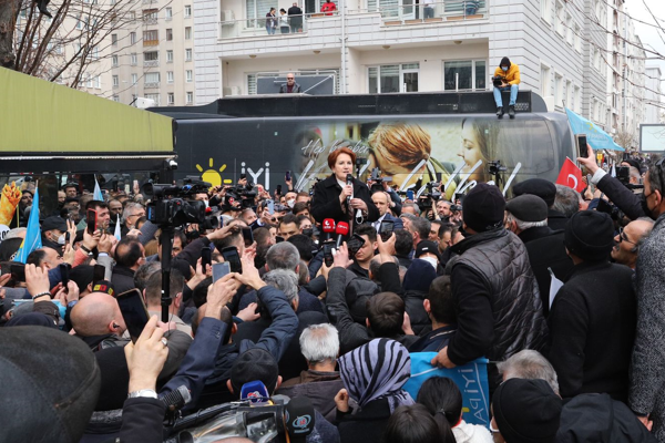 "Başbakan Akşener" sloganları eşliğinde konuşmasına başlayan Akşener, "2 yılı aşkın bir süredir esnaf esnaf, dükkan dükkan, il il, ilçe ilçe geziyorum. Ağalar bundan çok rahatsız çünkü alıştılar bizi birbirimize düşürerek iş görmeye; bedavadan, ucuz, emeksiz oylar almaya. Ama devran döndü. Artık bu milletin sesini duyan bir parti var. O da İYİ Parti." dedi.