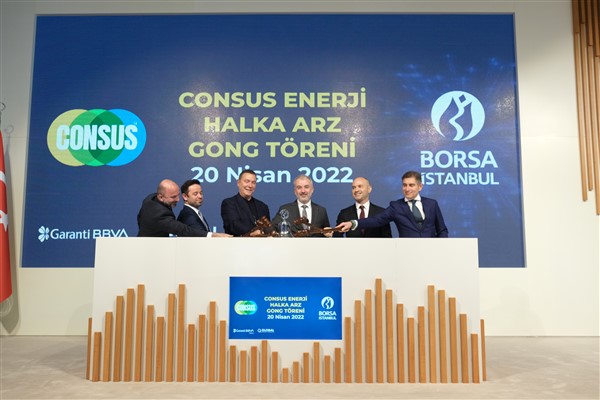 Gong töreninde konuşan Borsa İstanbul Genel Müdürü Korkmaz Ergun, “Bugün tüm dünya maalesef, tedarik zincirinde yaşanan sorunlar ve artan enerji fiyatları ile karşı karşıyadır. Bu nedenle, hem enerji sürekliliği hem de enerji maliyetleri tüm sektörleri yakından etkilemektedir. Bu durum, yerli ve yenilenebilir kaynaklarla üretilen enerjinin önemini herkese bir kez daha hatırlatmaktadır. Consus Enerji bugün işlem görmeye başlayarak, yeni yatırımcılarından aldığı güçle yoluna daha güçlü devam edecektir. Bu artan gücünü, enerjide sürdürülebilirlik odaklı ve yenilikçi uygulamalarda kullanacaktır. Örneğin tarımsal artıkları enerjiye dönüştüren biyokütleden enerji uygulamaları gibi, örneğin tüketim yerinde üretim modeliyle verimliliği arttıran uygulamalar gibi. Ben Consus Enerjiye, halka arz gelirini bu tür yenilikçi ve sürdürülebilir uygulamalarda kullanacak olmasından dolayı teşekkür ediyorum. Consus Enerji, yaklaşık 520 milyon TL halka arz tutarı ile 174 bin yatırımcıya gerçekleştirilen satışla başarılı bir halka arz gerçekleştirmiştir. Bu başarılı halka arz sürecinde emeği geçen herkese, tüm şirket çalışanlarına, aracı kuruma, teşekkür ediyorum, sermaye piyasalarımıza hayırlı olmasını diliyorum. Consus Enerjiye Borsamız ailesine hoş geldiniz diyorum” diye konuştu.